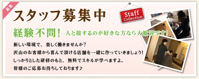 気楽に立ち寄れるリーズナブルな価格設定のリラクゼーションサロンです。 安くても高い技術と接客で「安心・満足」! ぜひ、癒しのひとときをご体験ください。